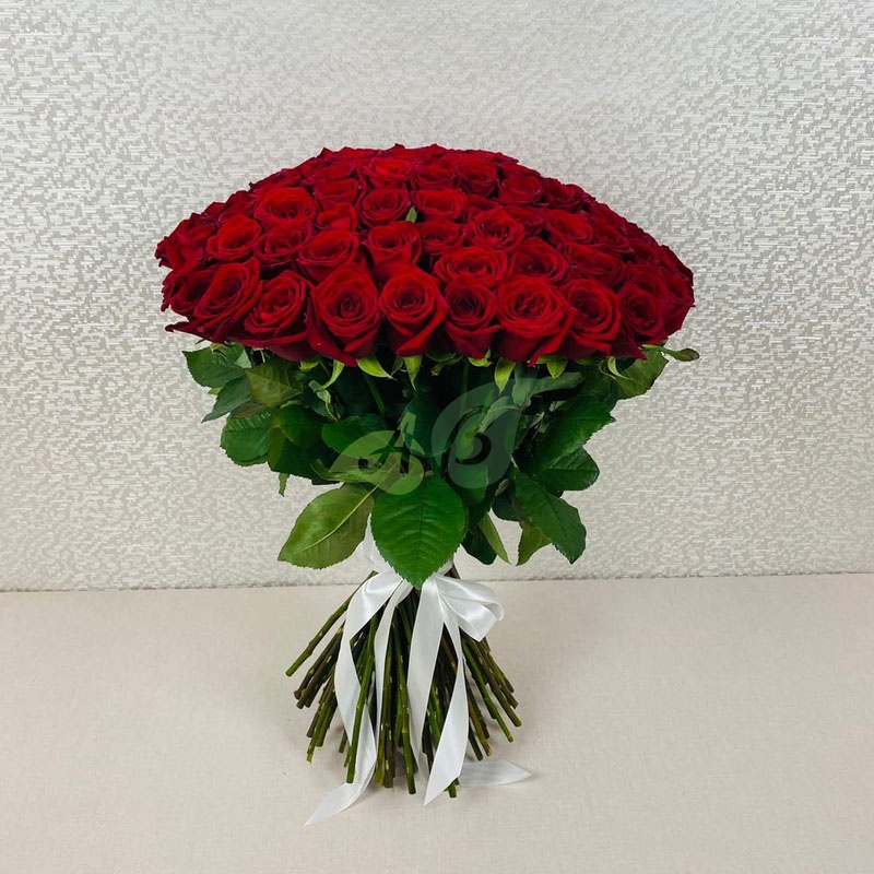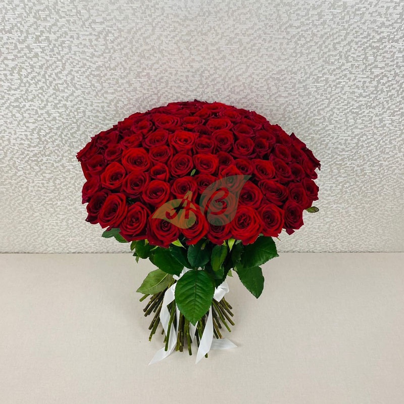 • Роза - 101 штука, цвет - красный, длина стебля - 60 см;