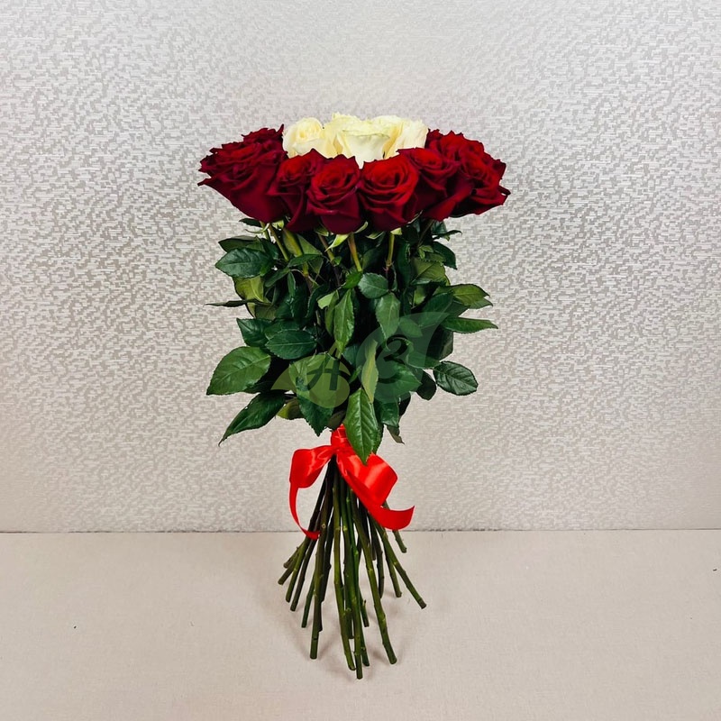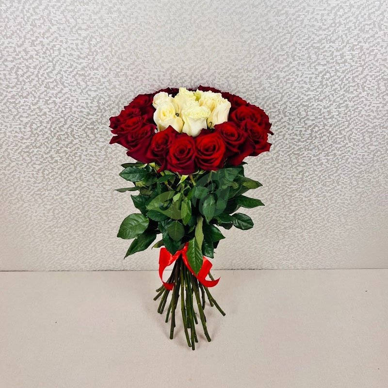 Всего пара кликов и букет из 25 белых и красных роз будет доставлен по нужному вам адресу.