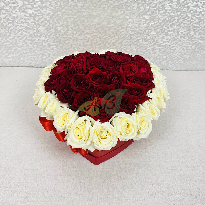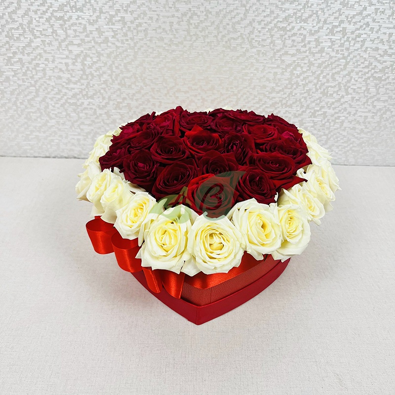 Если дарить цветы в коробке на праздник, то, несомненно, заказывать розы. Доставка этой шикарной композиции из красных и белых роз будет бесплатной по Ростову Великому.