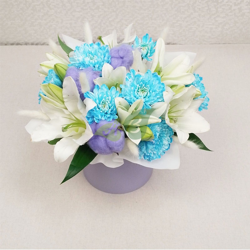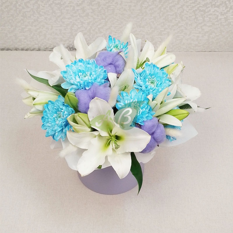 • Хризантема кустовая - 1 штука, цвет - голубой;