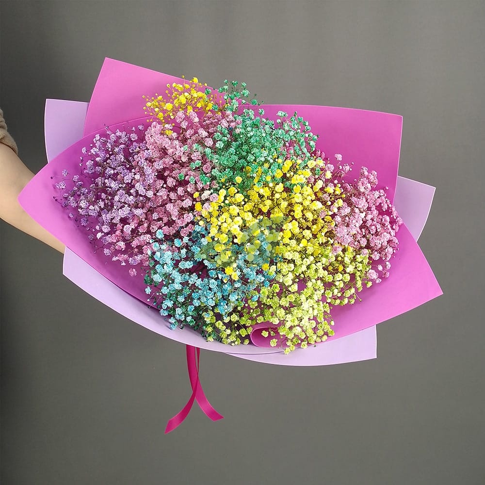 Состав и характеристики букета разноцветная гипсофила: